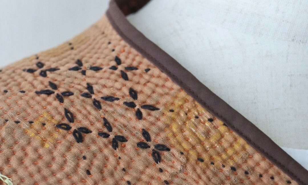 ※使用しているカンタキルトは、サリーや古布を重ねたヴィンテージ生地のため、使用感や経年劣化がございます。