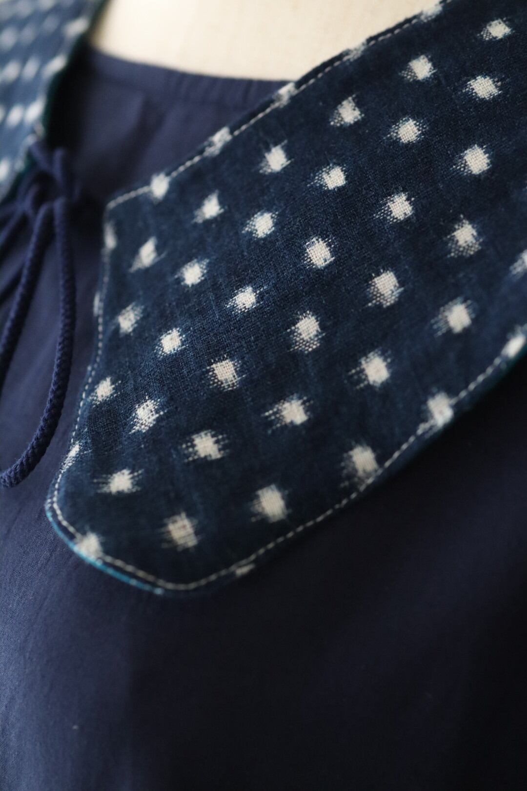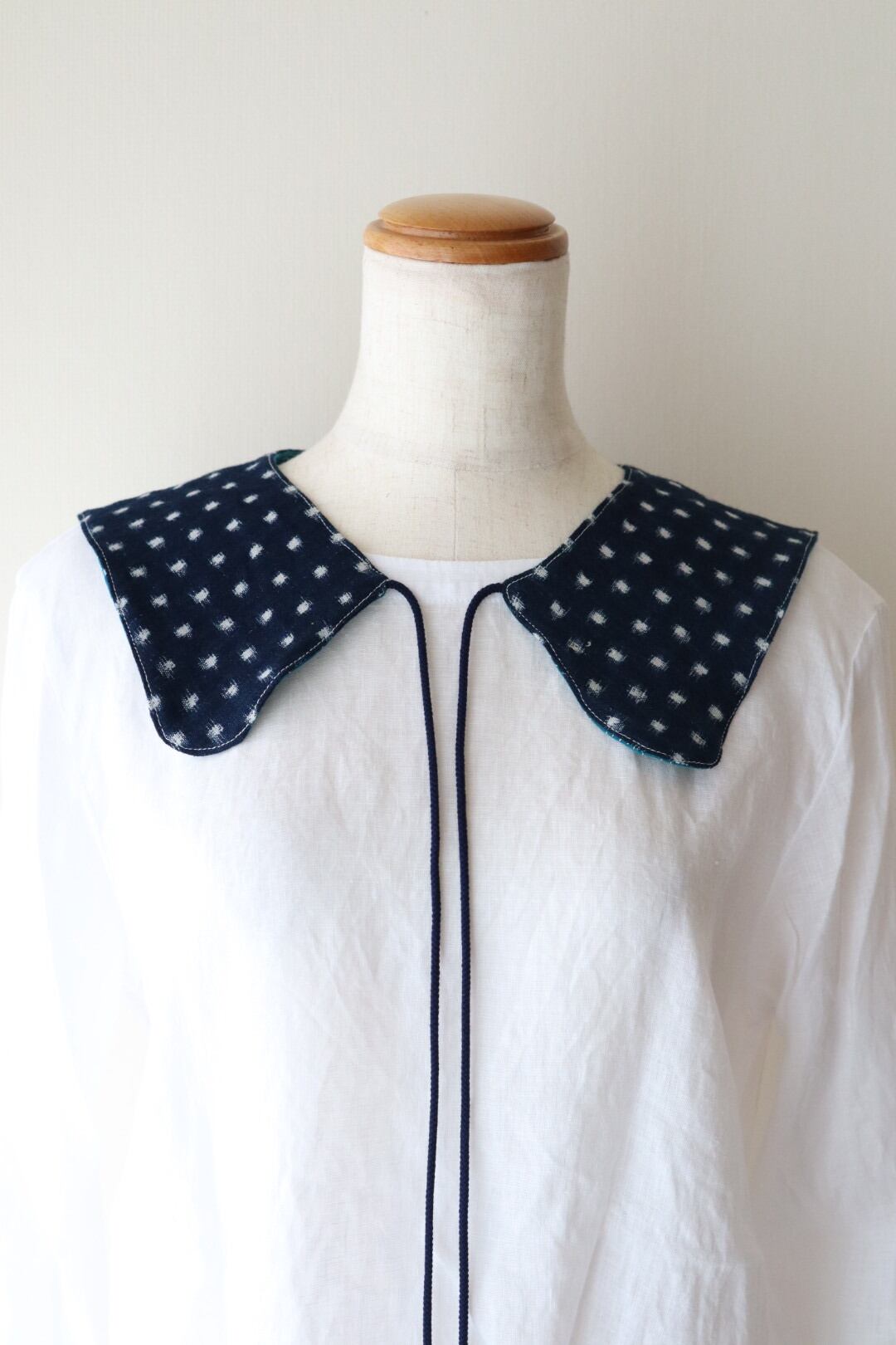 カンタキルトと絣の付け襟 (リバーシブル)
