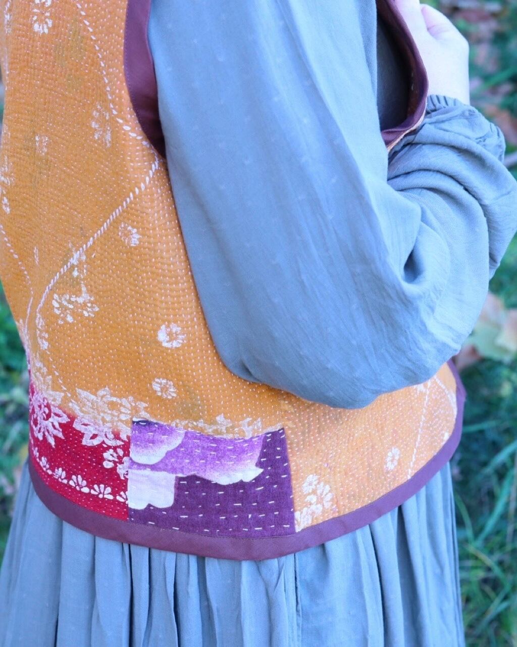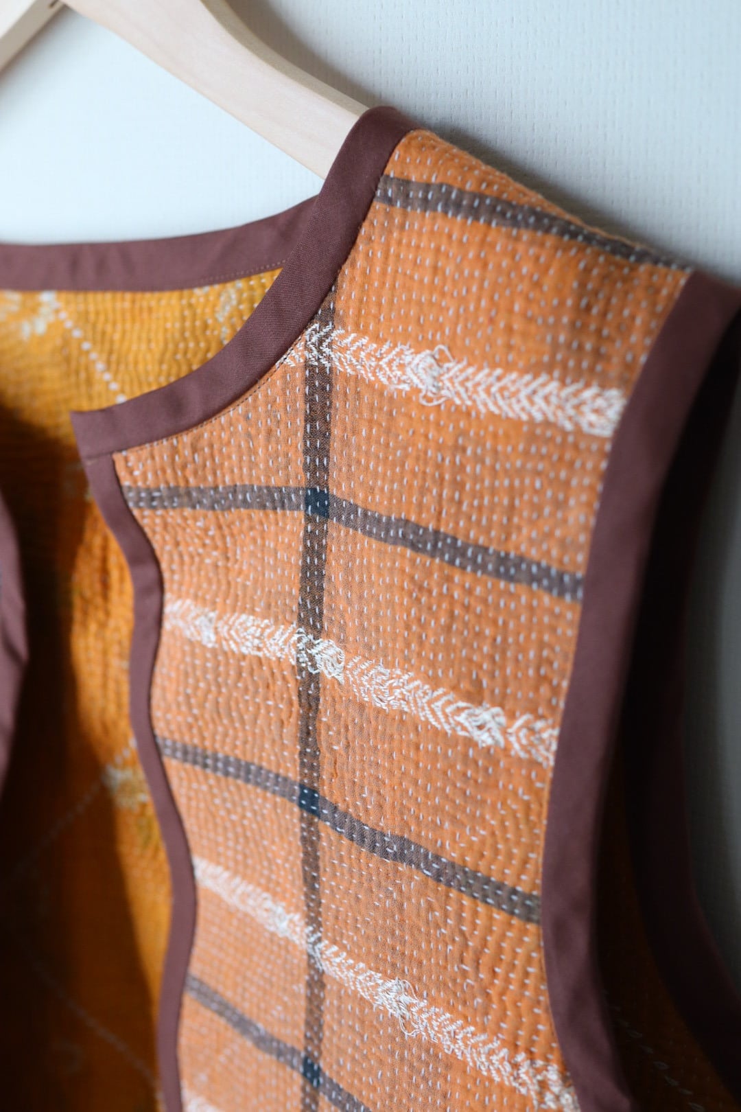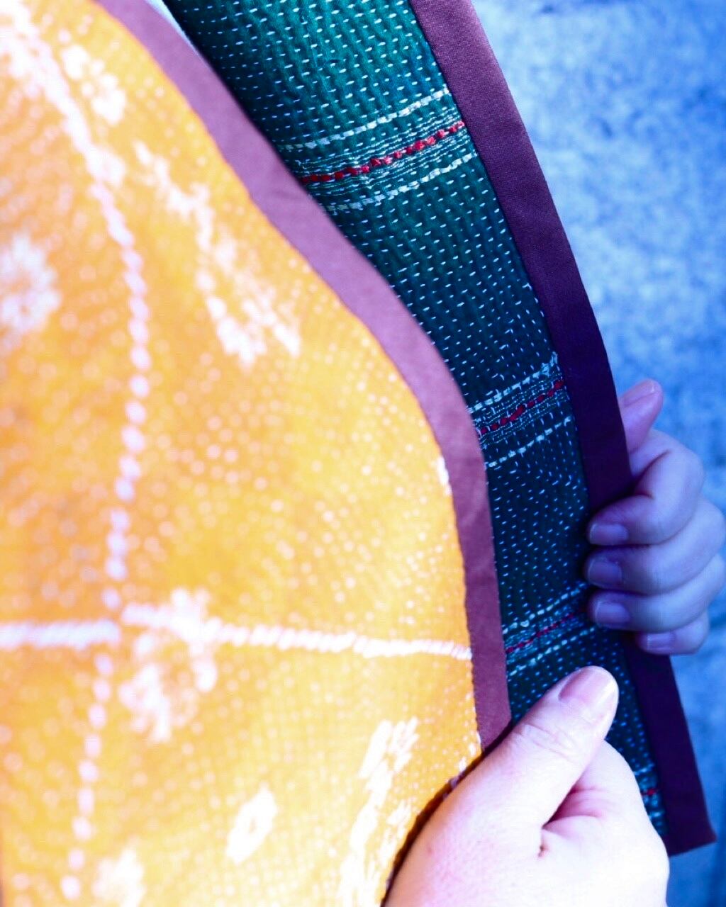 ※使用しているカンタキルトは、サリーや古布を重ねたヴィンテージ生地のため、使用感や経年劣化がございます。